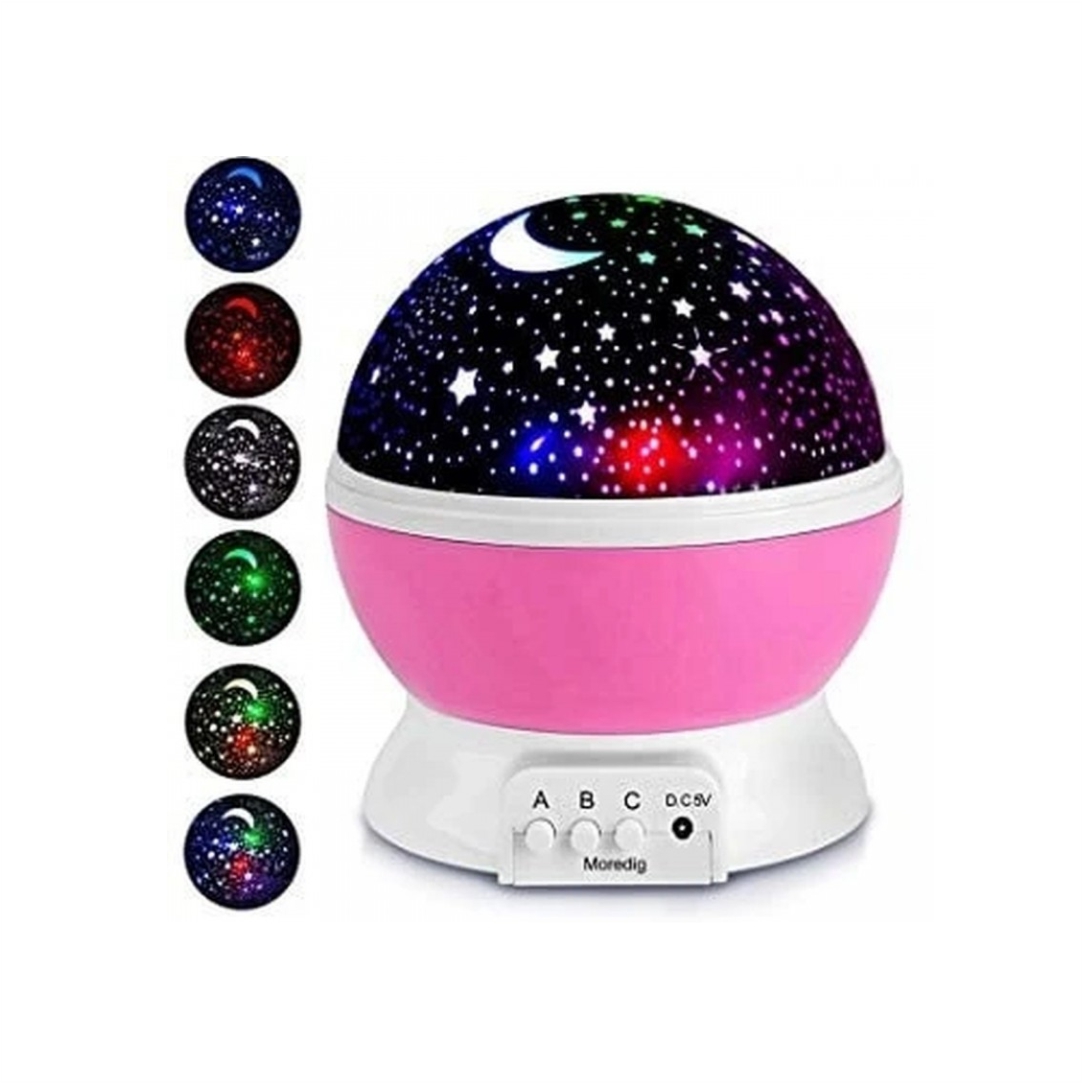 Περιστρεφόμενος προβολέας δωματίου για μικρούς και μεγάλους. Ιδανικό για νυχτερινά φώτα. Έργο αστέρια στο ταβάνι. Λειτουργεί με 4 μπαταρίες AAA, δεν περιλαμβάνονται. Διαθέτει 3 διαφορετικές λειτουργίες.