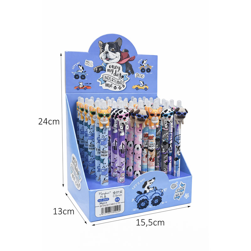 Σετ με 36 στυλό γραφής με παιχνιδιάρικα σχέδια σκύλων, ιδανικά για παιδιά αλλά και για όσους αγαπούν τα χαριτωμένα και ξεχωριστά είδη γραφείου. Κάθε στυλό διαθέτει διαφορετικό σχέδιο, προσφέροντας ποικιλία και χρώμα στη καθημερινή γραφή.