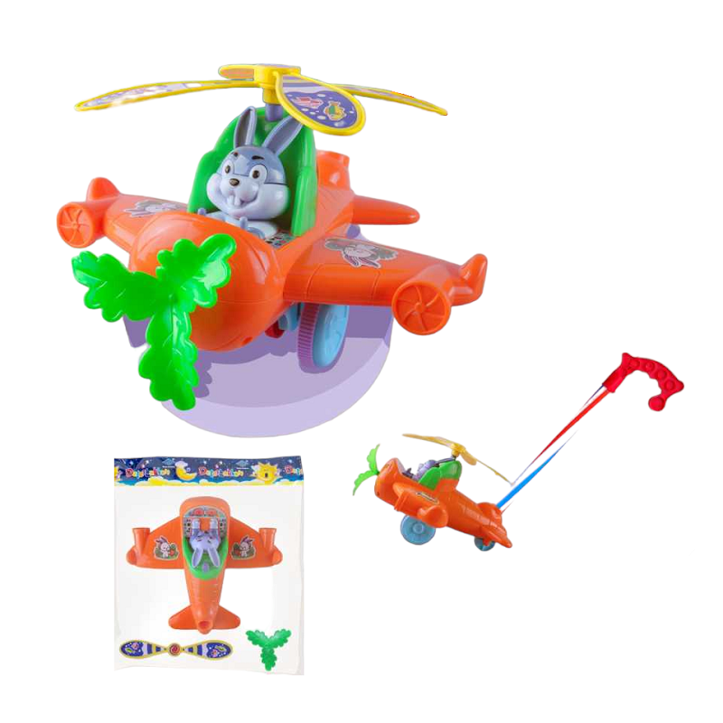 Συρόμενο παιχνίδι Αεροπλανάκι με Κουνελάκι και έλικες που κινούνται, με υπέροχο πολύχρωμο σχεδιασμό και εργονομική λαβή για ατελείωτες βόλτες παντού!