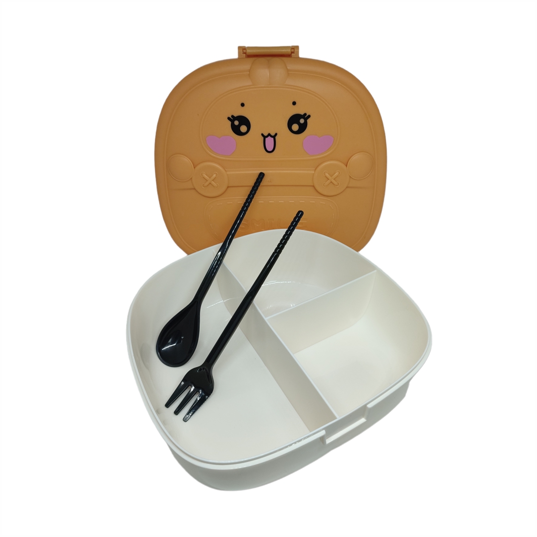 Δοχείο φαγητού με 3 χωρίσματα. Είναι ελαφρύ και πρακτικό ώστε να διατηρήσετε και να αποθηκεύσετε φρέσκα φρούτα, λαχανικά και μερίδες γεύματος. Ιδανικό για το σχολείο. Διαστάσεις 19x18x6cm. Περιλαμβάνει ένα κουταλάκι και ένα πιρούνι.