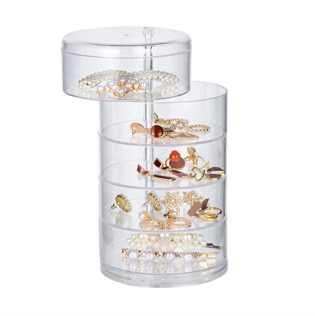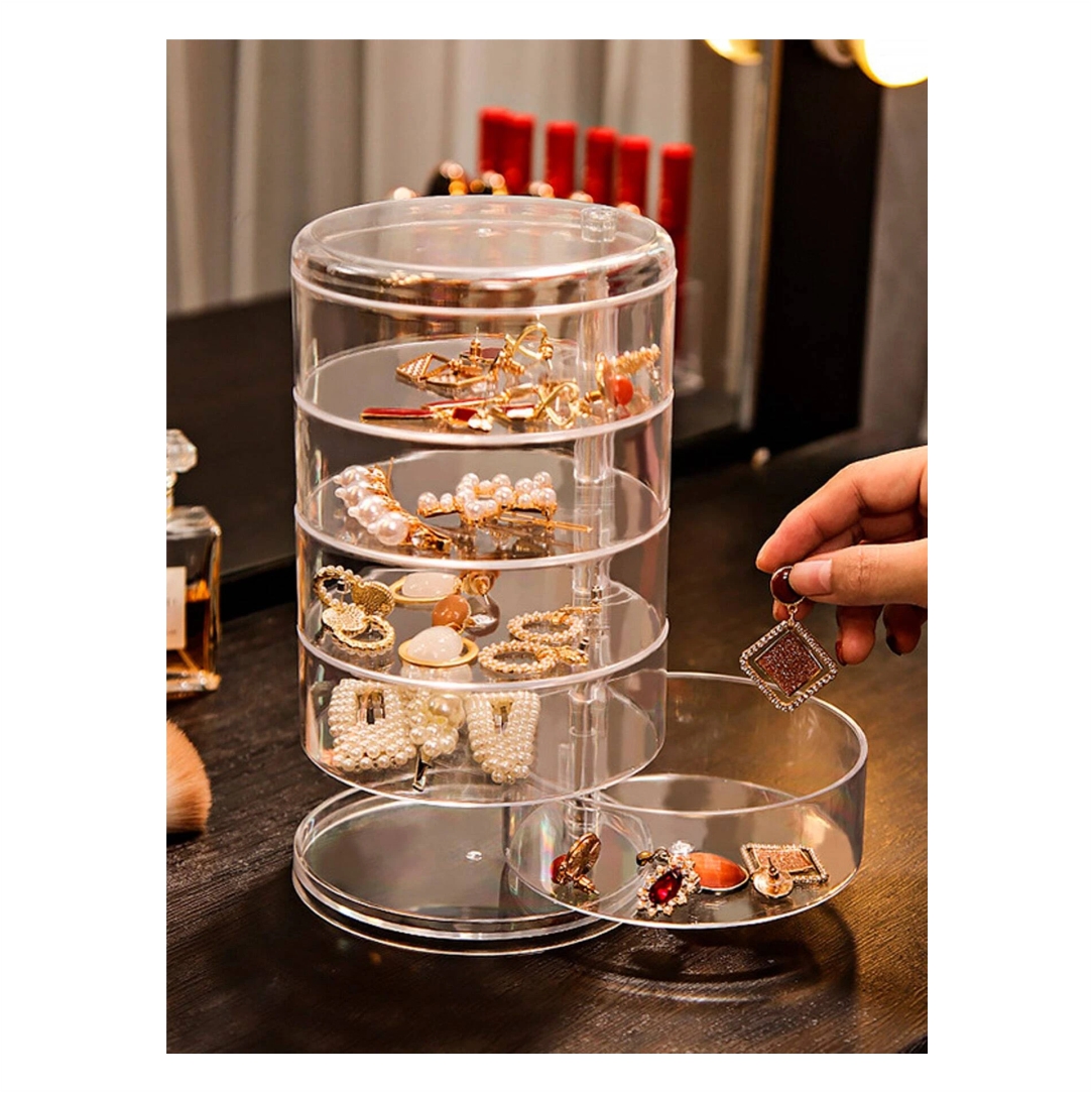 Θήκη οργάνωσης κοσμημάτων. Μια υπέροχη λύση για να οργανώσετε και να αποθηκεύσετε τα κοσμήματα σας. Η θήκη είναι διάφανη για να βλέπετε στο εσωτερικό της. Διαθέτει 5 θέσεις (ράφια) για τα καλλυντικά ή τα κοσμήματα. Διαστάσεις 21x12cm.