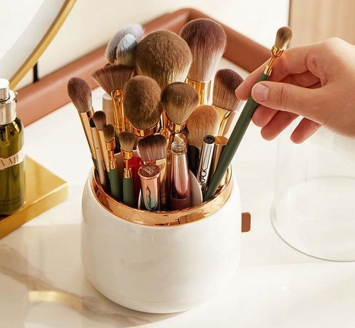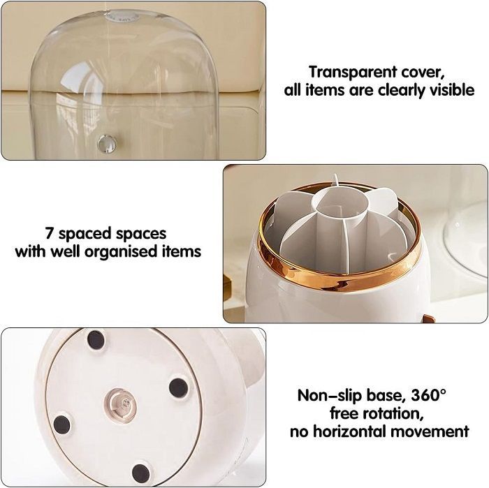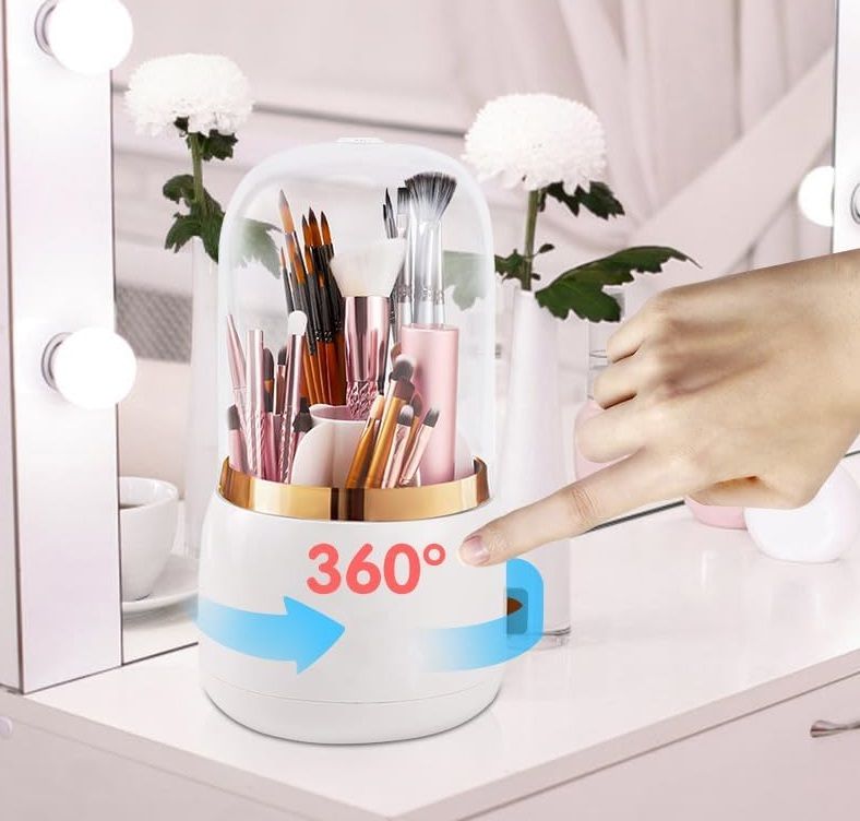 Θήκη οργάνωσης πινέλων μακιγιάζ , πλαστική με 7 διαφορετικούς χώρους με διαχωριστικά, προστατευτικό διαφανές καπάκι για να διατηρείτε τα πινέλα σας μακριά από σκόνη και περιστρεφόμενη βάση 360° για εύκολη διαχείριση.