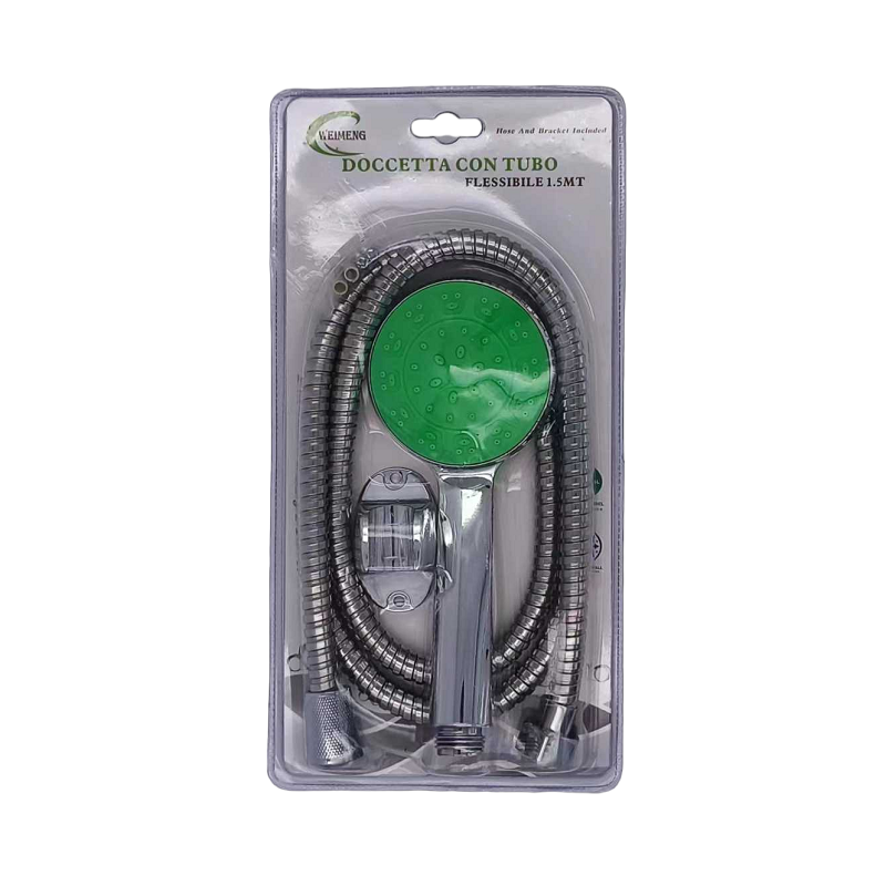 Τηλέφωνο-ακροφύσιο ντουζιέρας, απλό, με σπιράλ σωλήνα μήκους 1.5 μέτρου, με όλα τα παρελκόμενα τοποθέτησης. Εύκολη τοποθέτηση σε όλες τις βρύσες μπανιέρας και ντουζιέρας. Το ακροφύσιο διαθέτει προστατευτικά σιλικόνης στις εξόδους νερού, που αποτρέπουν την συσσώρευση αλάτων. Υψηλή ποιότητα κατασκευής με χρωμέ φινίρισμα, υψηλής ανθεκτικότητας.