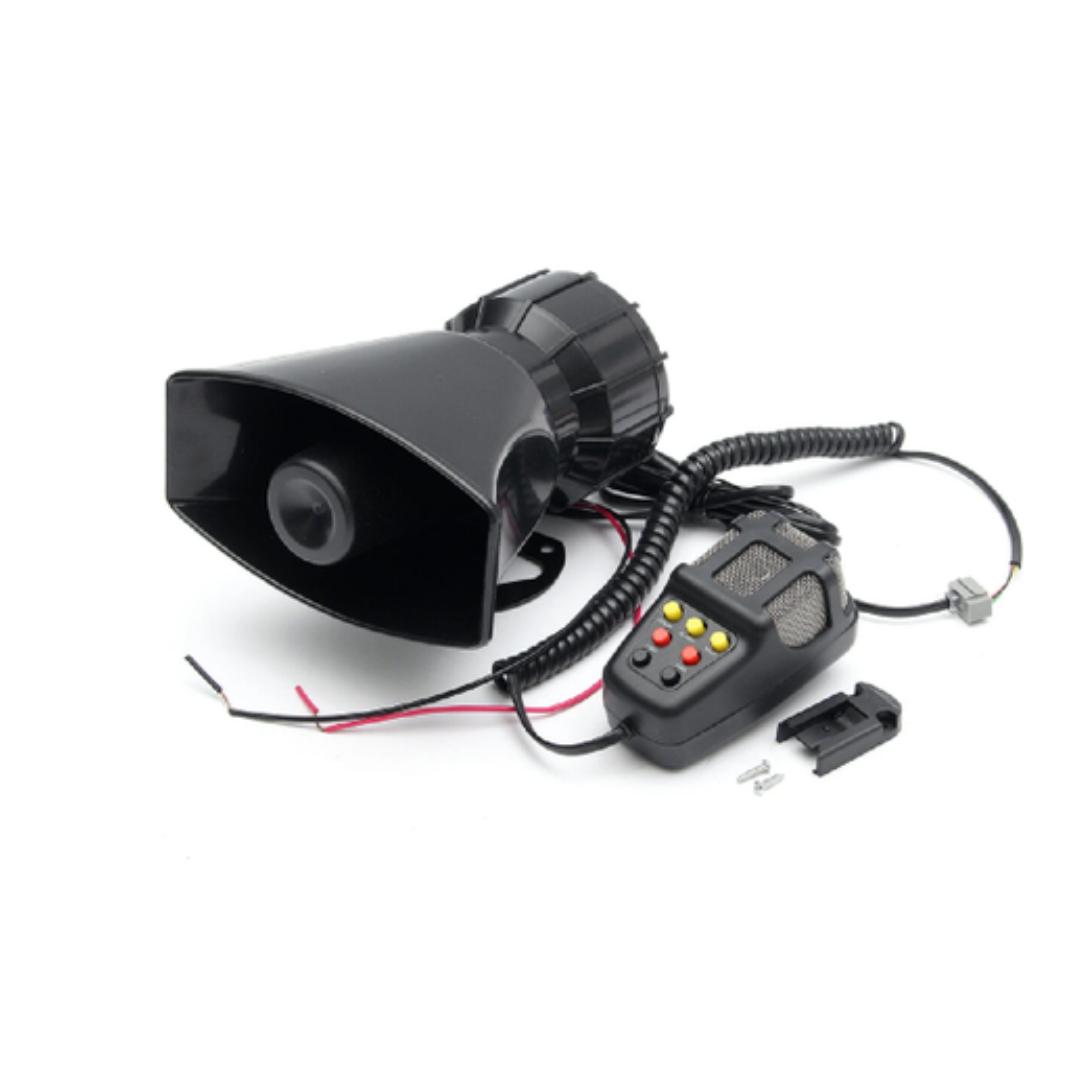 Τηλεβόας – μεγάφωνο με μικρόφωνο. Διαστάσεις 17x15x10cm. Διαθέτει 7 διαφορετικούς τόνους. Ψηφιακός προγραμματισμός ήχου. Τάση 12V.