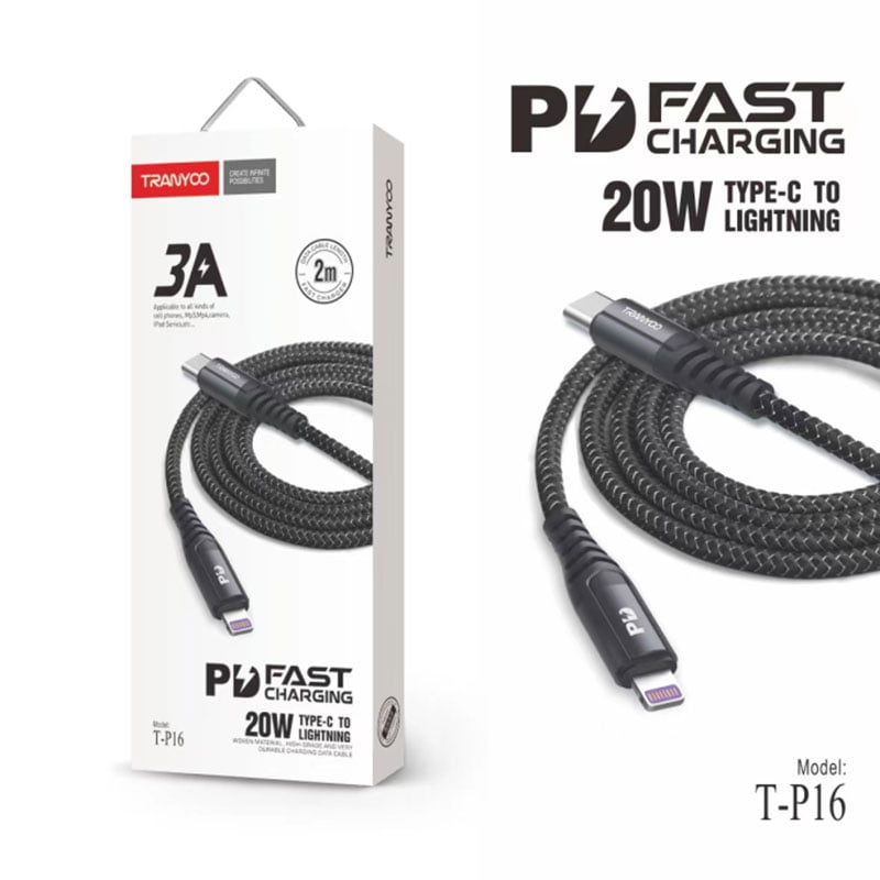 Tranyoo Καλώδιο δεδομένων Lightning-IOS 2m 3A 20W T-P16 – Fast charger lighting cable