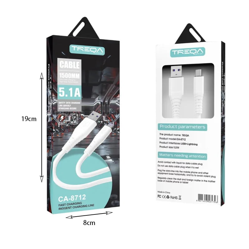 Treqa CA-8712 καλώδιο δεδομένων 1.5m USB σε Lighting – Fast Charging Cable