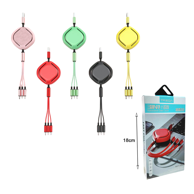 Treqa Καλώδια δεδομένων για γρήγορη φόρτιση 3σε1 1.1M CA-886 – 3in1 retractable data cable