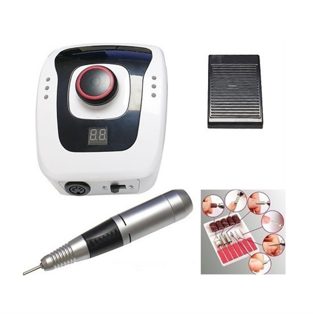 Τροχός νυχιών για μανικιούρ-πεντικιούρ. Διαθέτει 6 διαφορετικές κεφαλές. Αφαιρεί το gel, το βερνίκι νυχιών ή τα πετσάκια. Τάση 110-220V. Στροφές 35000PRM. Διαθέτει διακόπτη ρύθμισης ταχύτητας. Διαθέτει στυλό και πετάλ.