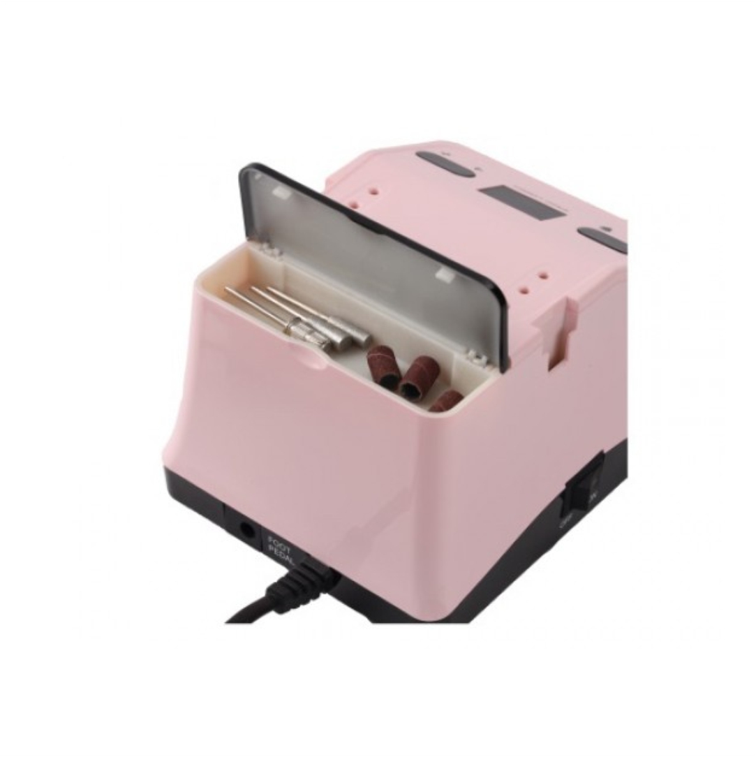 Τροχός νυχιών για μανικιούρ-πεντικιούρ. Διαθέτει 6 διαφορετικές κεφαλές. Αφαιρεί το gel, το βερνίκι νυχιών ή τα πετσάκια. Στροφές 0-45000PRM. Διαθέτει διακόπτη ρύθμισης ταχύτητας. Διαθέτει στυλό και πετάλ. Τάση 220-240V. Ισχύς 65W.