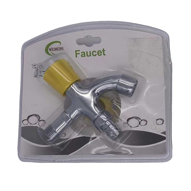 Βρύση-Κάνουλα διπλή με βάνα, ανθεκτική στη διάβρωση, κατασκευασμένη από επιχρωμιωμένο ορείχαλκο.