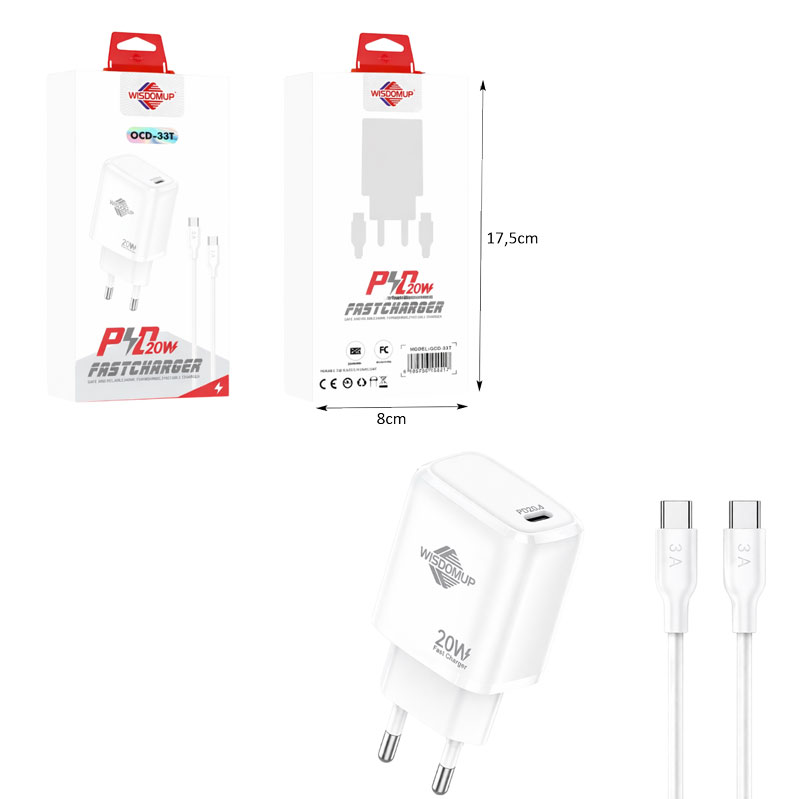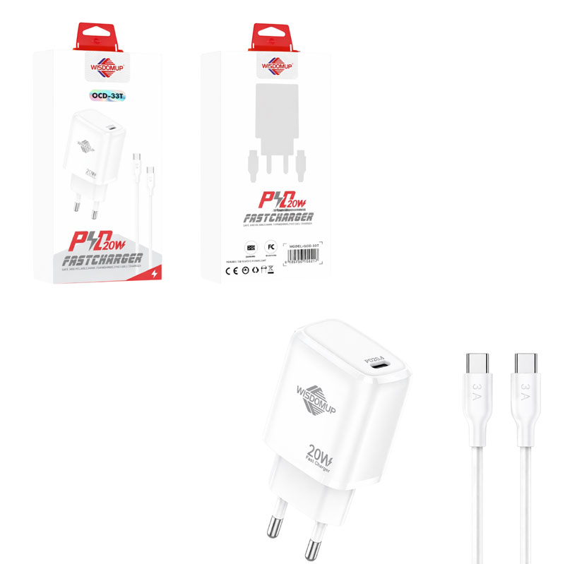 Wisdomup Φορτιστής Κινητού USB-C με Καλώδιο Type-C σε Type-C 20W OCD-33T – Fast Charger with Type-C to Type-C Cable