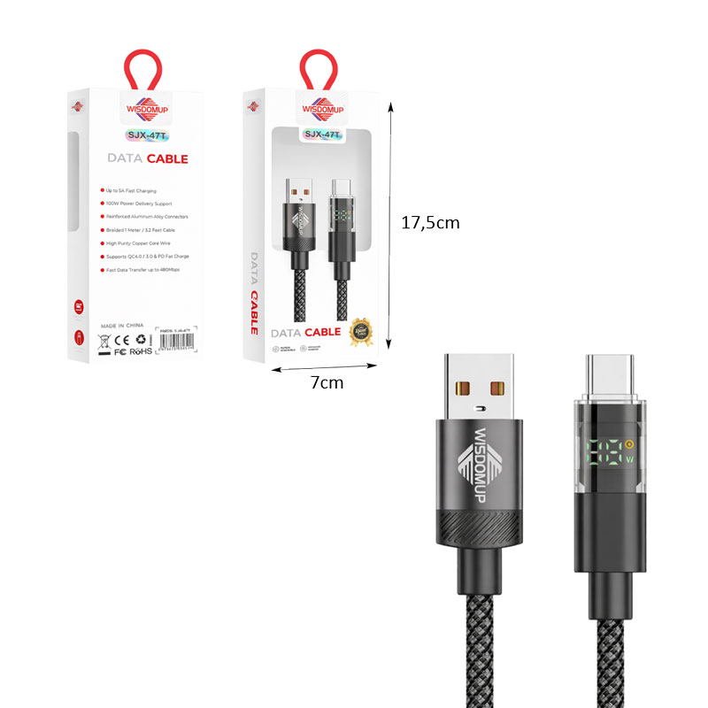 Αναβάθμισε την εμπειρία φόρτισης και μεταφοράς δεδομένων με το καλώδιο SJX-47T της Wisdomup, σχεδιασμένο για υψηλή απόδοση και αντοχή. Διαθέτει ενσωματωμένη οθόνη LED που εμφανίζει σε πραγματικό χρόνο την ισχύ φόρτισης, προσφέροντας πλήρη έλεγχο και ενημέρωση κατά τη χρήση.