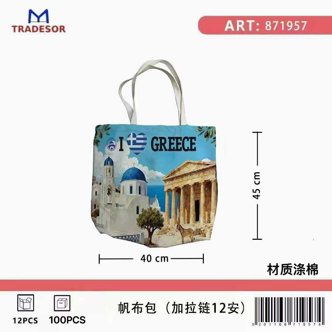 Υφασμάτινη τουριστική τσάντα καμβάς με φερμουάρ – Greece – 45*40*10cm – 871957