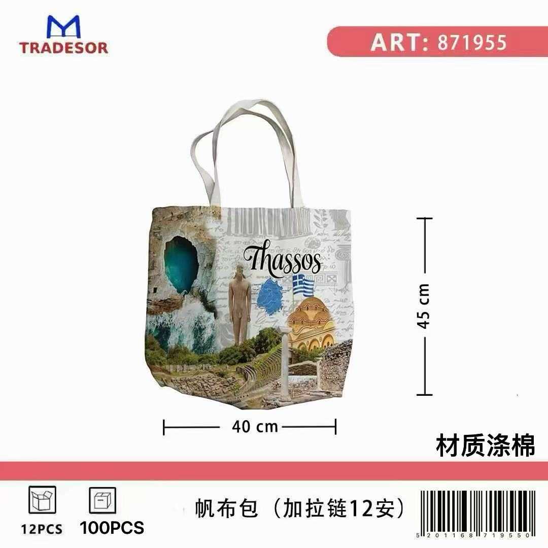 Υφασμάτινη τουριστική τσάντα καμβάς με φερμουάρ – Thassos – 45*40*10cm – 871955