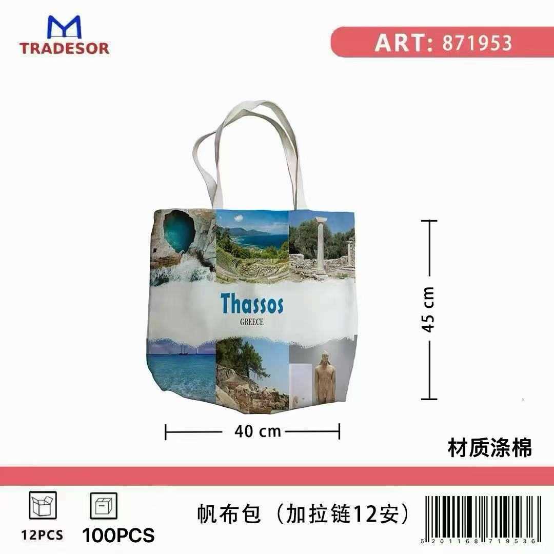 Υφασμάτινη τουριστική τσάντα καμβάς με φερμουάρ – Thassos – 45*40*10cm – 871953