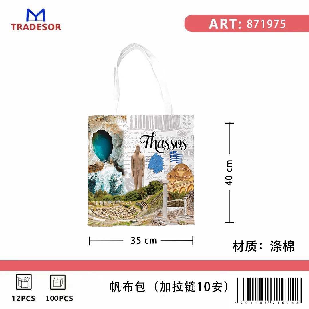 Υφασμάτινη τουριστική τσάντα καμβάς με φερμουάρ – Thassos – 35*40cm – 871975